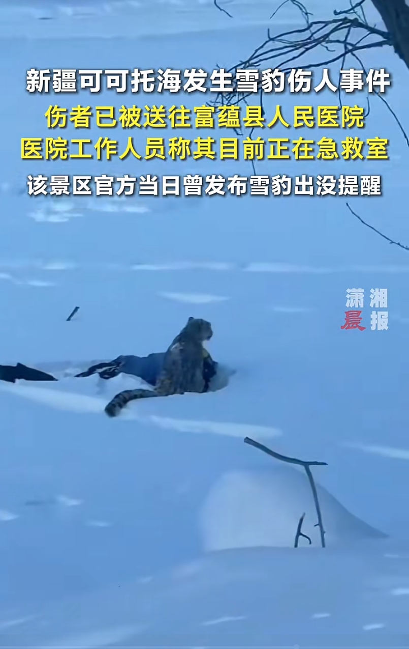 2026年1月23日,多位网友发布视频称一位雪友在可可托海遇雪豹后被袭击,随后被多人从雪地扶至道路上。