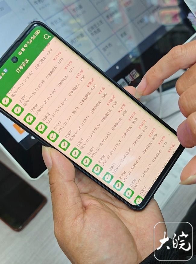 1月25日下午2时,一直在后厨忙碌的詹桂州终于能稍作歇息。他走到前厅,大致估算了一下,从早上到此刻,店里出了50多单,100多碗牛肉面(汤)。