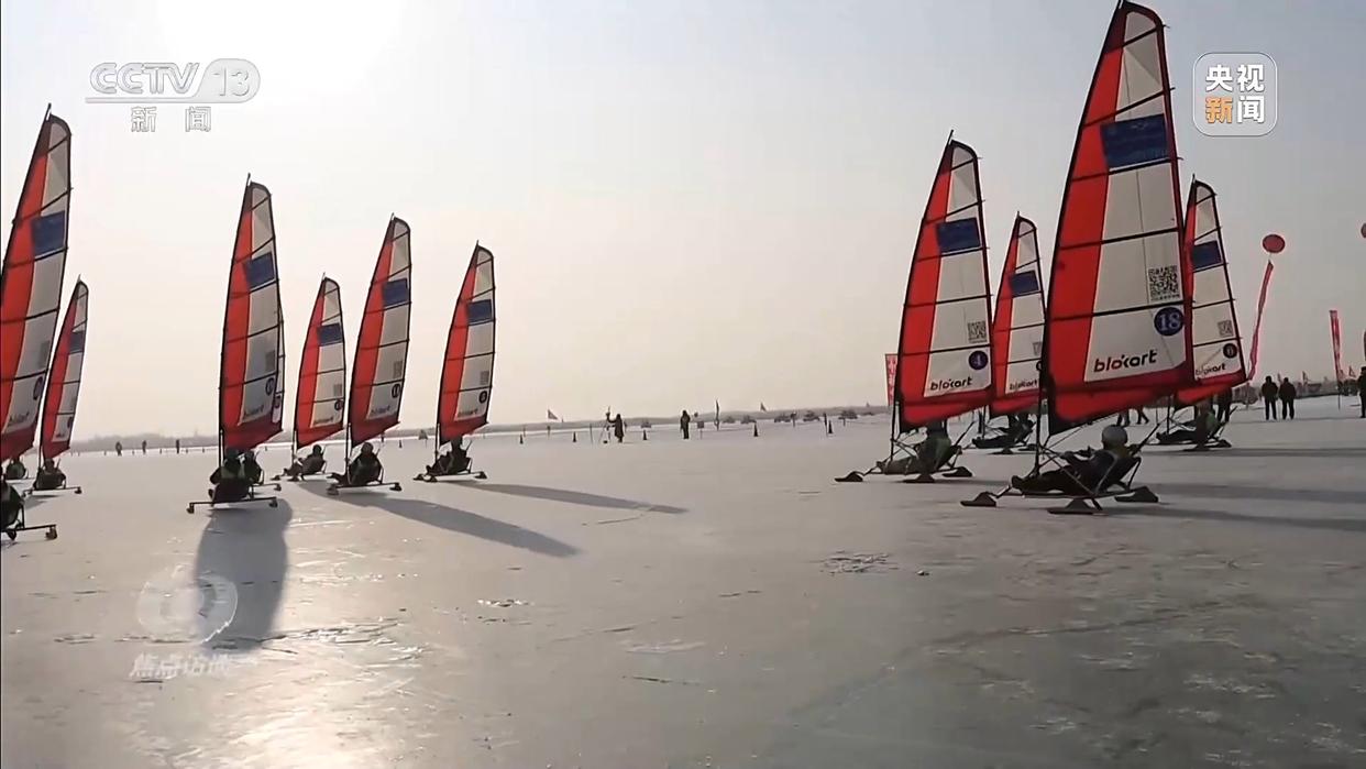 记者抵达时,正好赶上博斯腾湖第十八届冰雪季开幕,同时也是冰上帆船运动首次在这里“扬帆起航”。