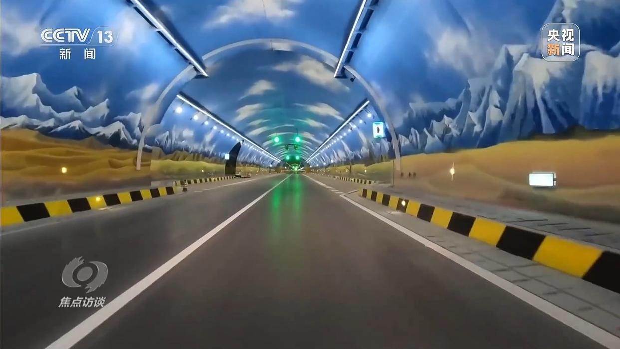 更快、更安全、更舒适,也是记者的亲身感受。带着这样的感受,很快便来到天山胜利隧道。它是乌尉高速的关键性控制工程。去年12月底记者拍摄到镜头,距离贯通仅一步之遥。如今,沧桑巨变,令人感慨。大美新疆被浓缩成六幅主题壁画,让人感到十分惬意。天山胜利隧道全长22.13公里,是全球最长的高速公路隧道。过去翻越天山至少要3小时,如今仅用20分钟。高效通行的背后是智慧交通系统对路况的实时监测与精准调控。