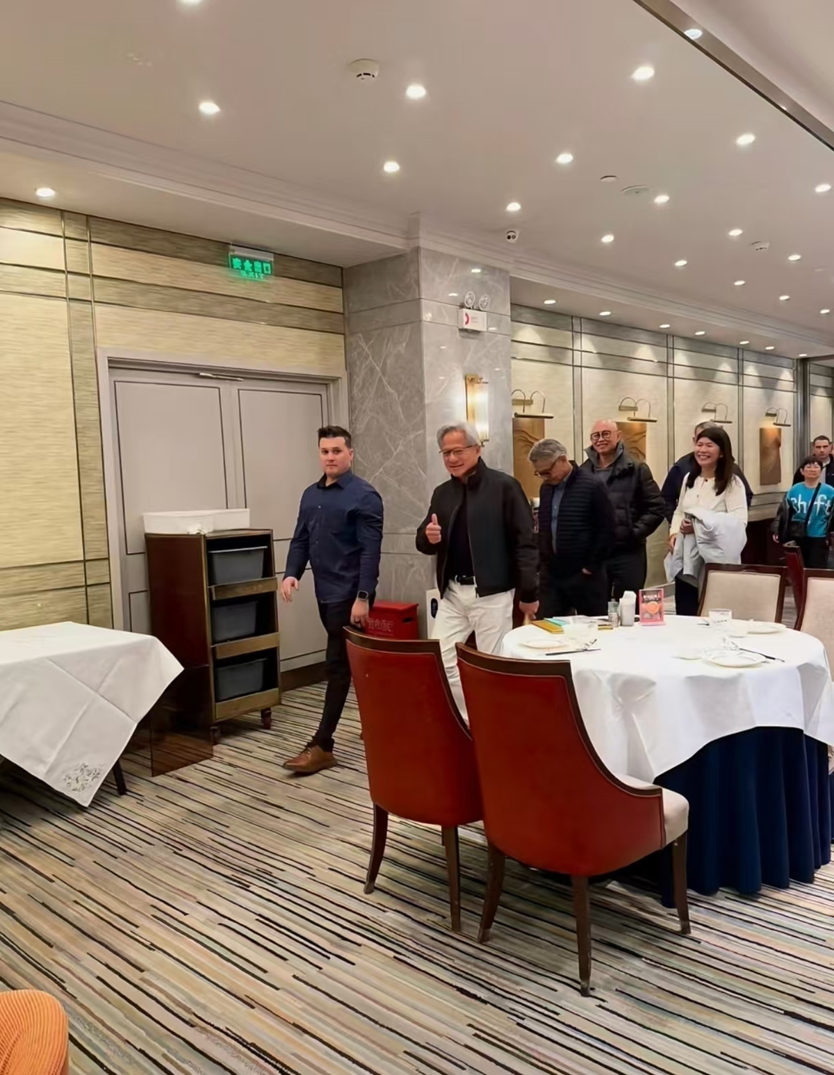 同样于25日中午偶遇黄仁勋的顾客陈先生(化姓)称能见到科技领域的大佬非常开心,黄老板很友善,很多人找他合影。