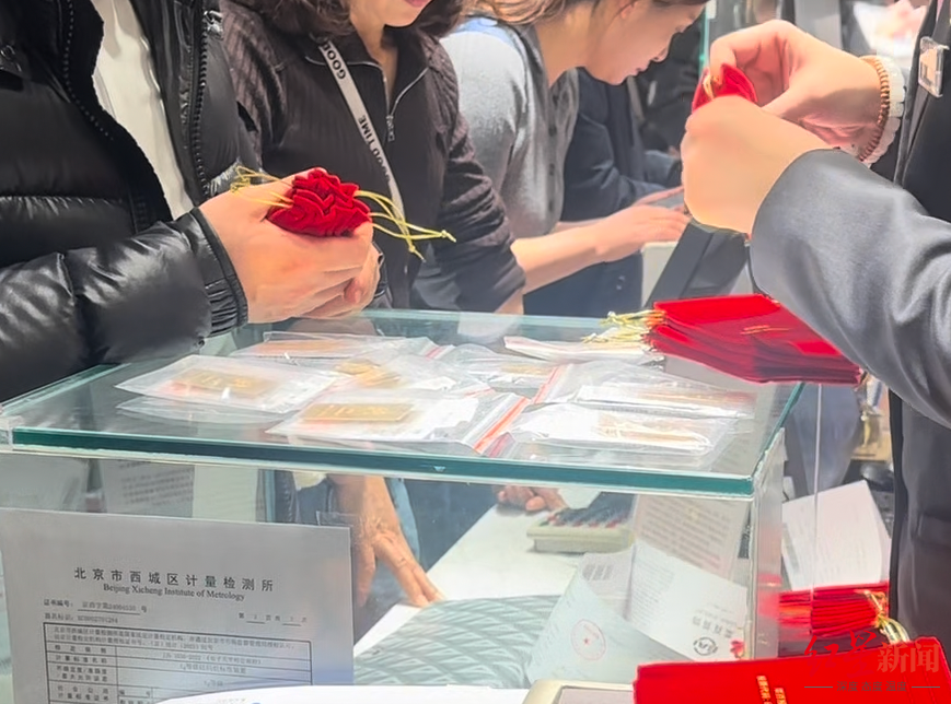1月28日下午,记者来到北京最热门的黄金店铺之一的菜百总店,投资金柜台前围满了购金的顾客,一百克一块的金条有人一次买几块、十几块,更大重量的金条则持续缺货等待补货。