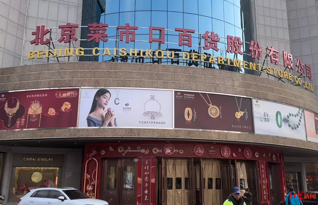 1月28日下午,红星新闻记者来到位于北京西城区的菜百总店,一座四层楼的商场,全部经营黄金、白银等珠宝首饰。