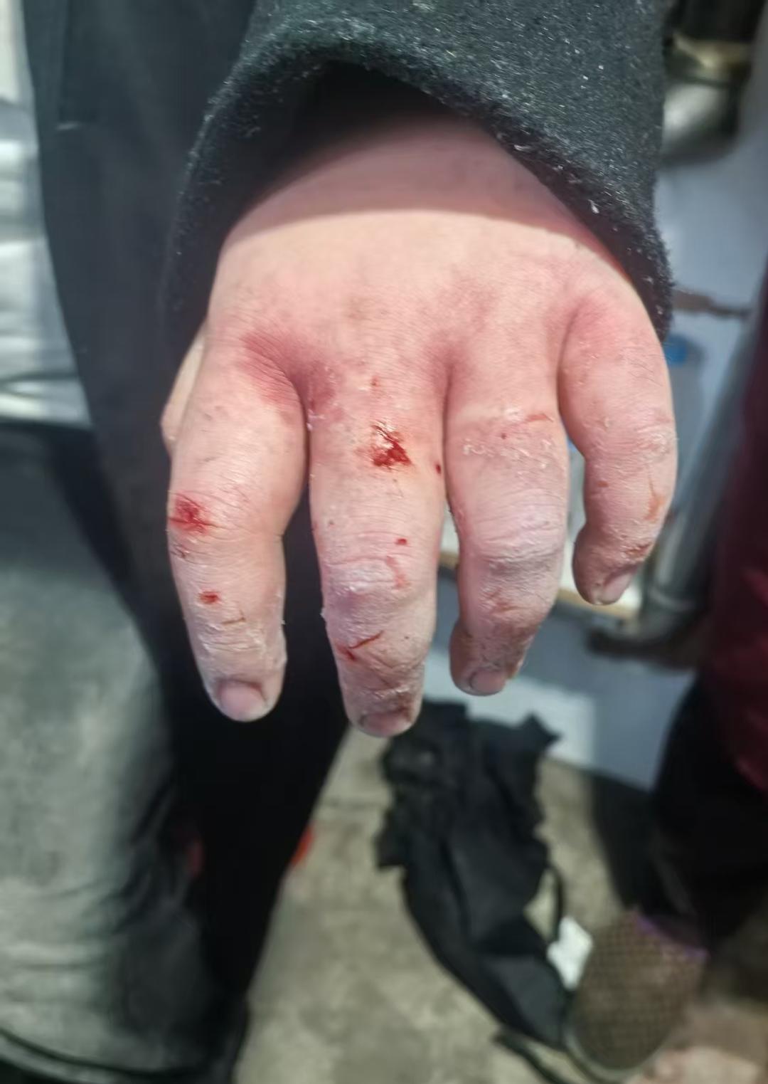 小陈被冻伤的手