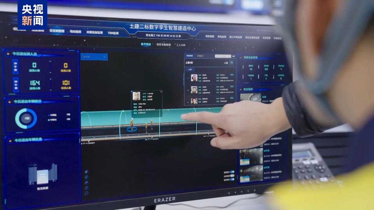 由于隧洞岩层较为脆弱,突泥涌水风险较高,施工风险大。为了保障工程在脆弱地层中能够安全推进,建设者们采用了极为精细的施工方案。同时在洞外搭建了一个与实体工程同步共生的数字孪生系统,将地下不可见的风险,变为屏幕上清晰可见的数据和预警。