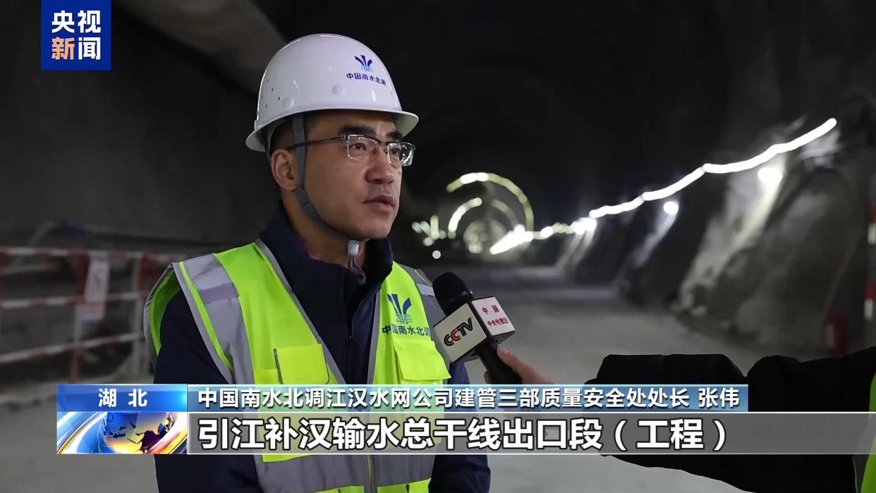 中国南水北调江汉水网公司建管三部质量安全处处长 张伟:引江补汉输水总干线出口段(工程)全长约5公里,平均埋深为全线最浅,其中埋深最浅处仅为34米。隧洞穿越“两郧断裂带”,围岩遇水极易软化,自稳能力极差。
