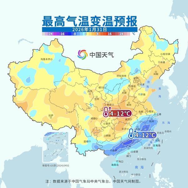从最高气温看,全国大部地区气温将在明后天陆续开始迅速触底反弹。明天,西北地区东部、华北中南部至湖北中西部等地就将开始升温。进入2月,江南、华南多地也会陆续转为升温。