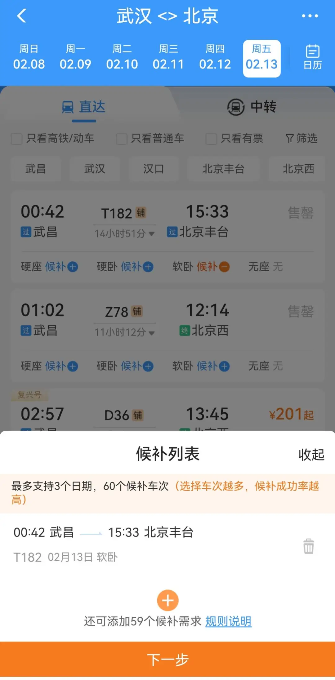 2、别只盯一趟车:多日期、多车次可大幅提升候补成功率