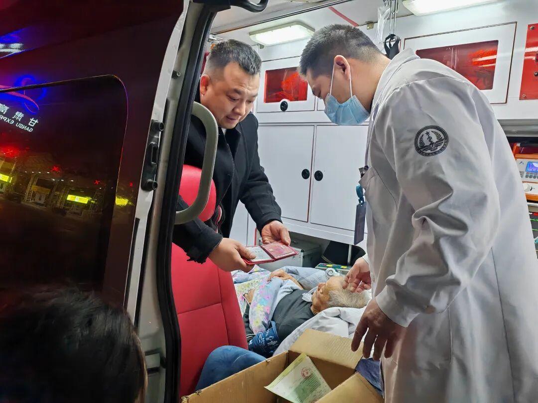救护车上93岁的谭爷爷
