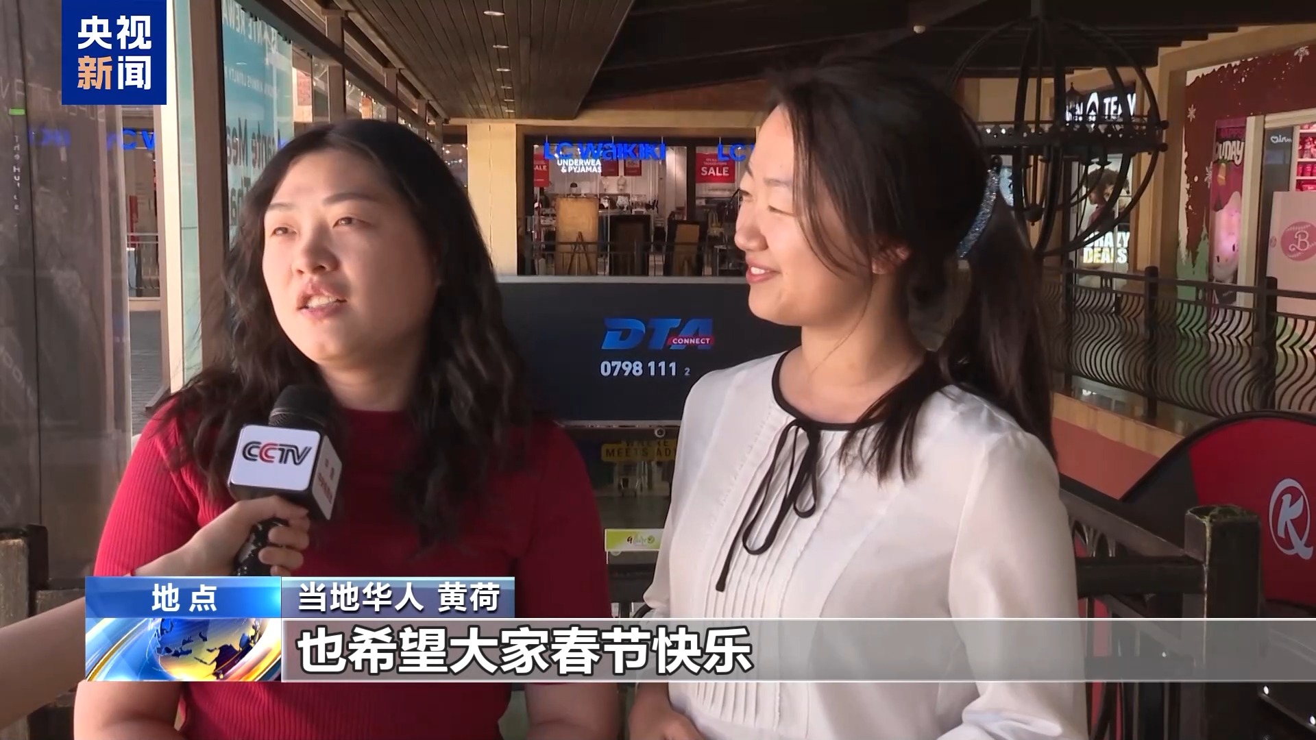 当地华人 黄荷:希望家人都身体健康,也希望大家春节快乐,万事如意,一马当先,马到成功。