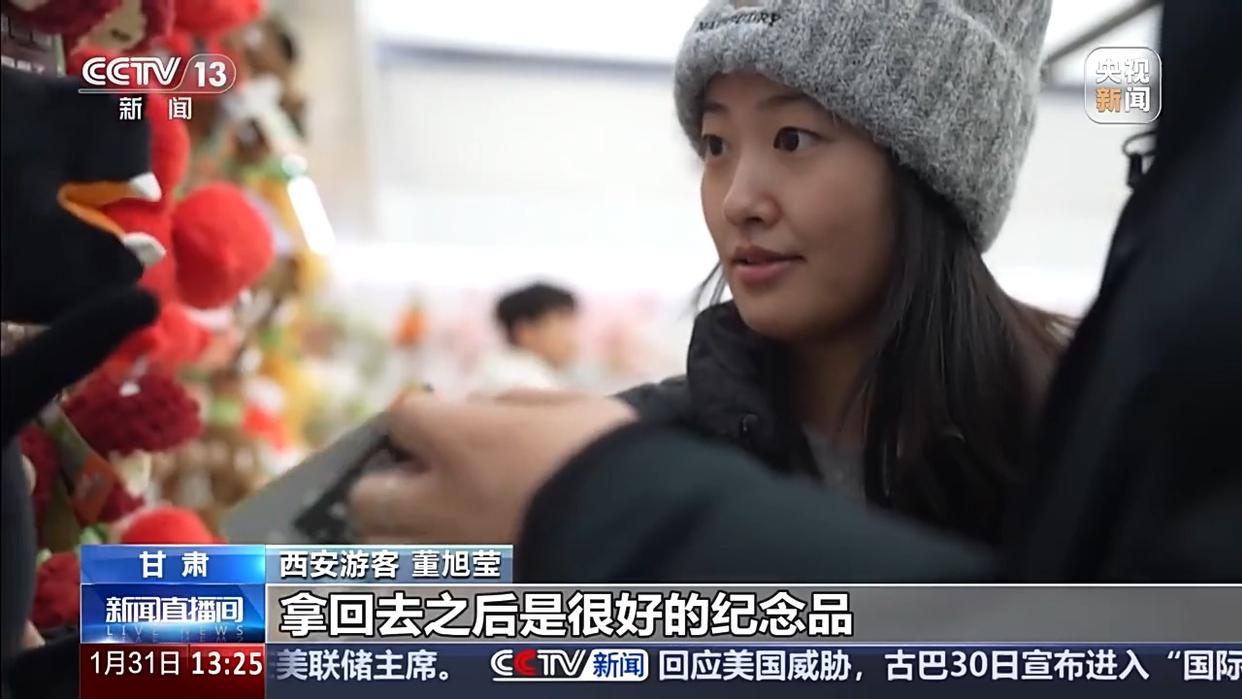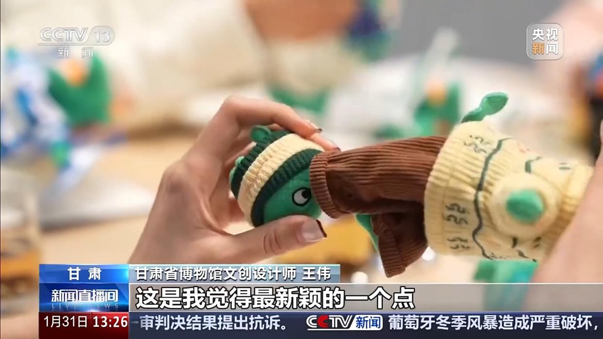 总台记者 王妍:它就是铜奔马的绒化文创——“绿马”,因“丑萌”而出圈。今年是马年,它也拥有了限定版的新春皮肤。你看,通体正红的“红运当头马”、身穿红色针织毛衣的“本命年马”,它们都是甘博今年“马力全开”系列贺岁新品。有没有哪一只戳中你的心啊?