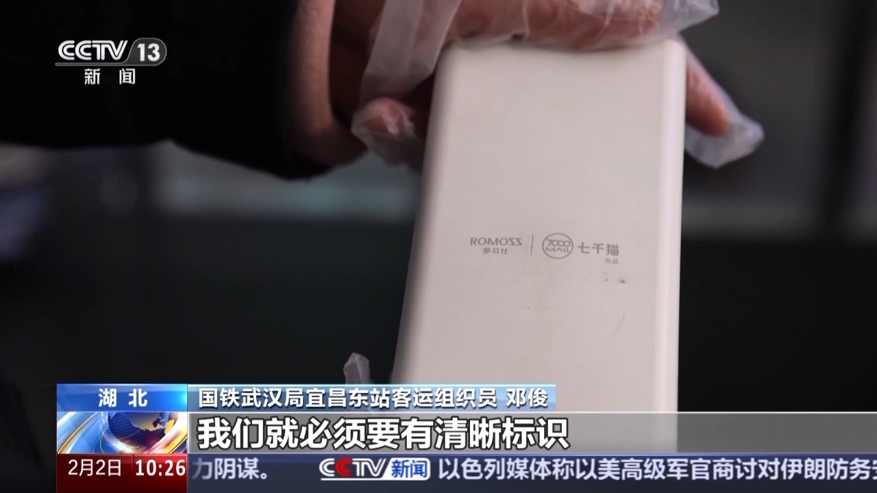 国铁武汉局宜昌东站客运组织员 邓俊:比如充电宝,就必须有清晰标识,且额定能量不得超过100Wh(瓦时);普通打火机不超过2个。