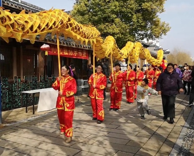 锣鼓声响起,舞龙队、大头娃娃、福禄寿喜NPC组成的巡游“天团”向大家走来,沿着六家畈踩街,和游客互动。记者注意到,舞龙队伍中不乏长者,但他们精神头十足,舞得欢天喜地、有模有样。
