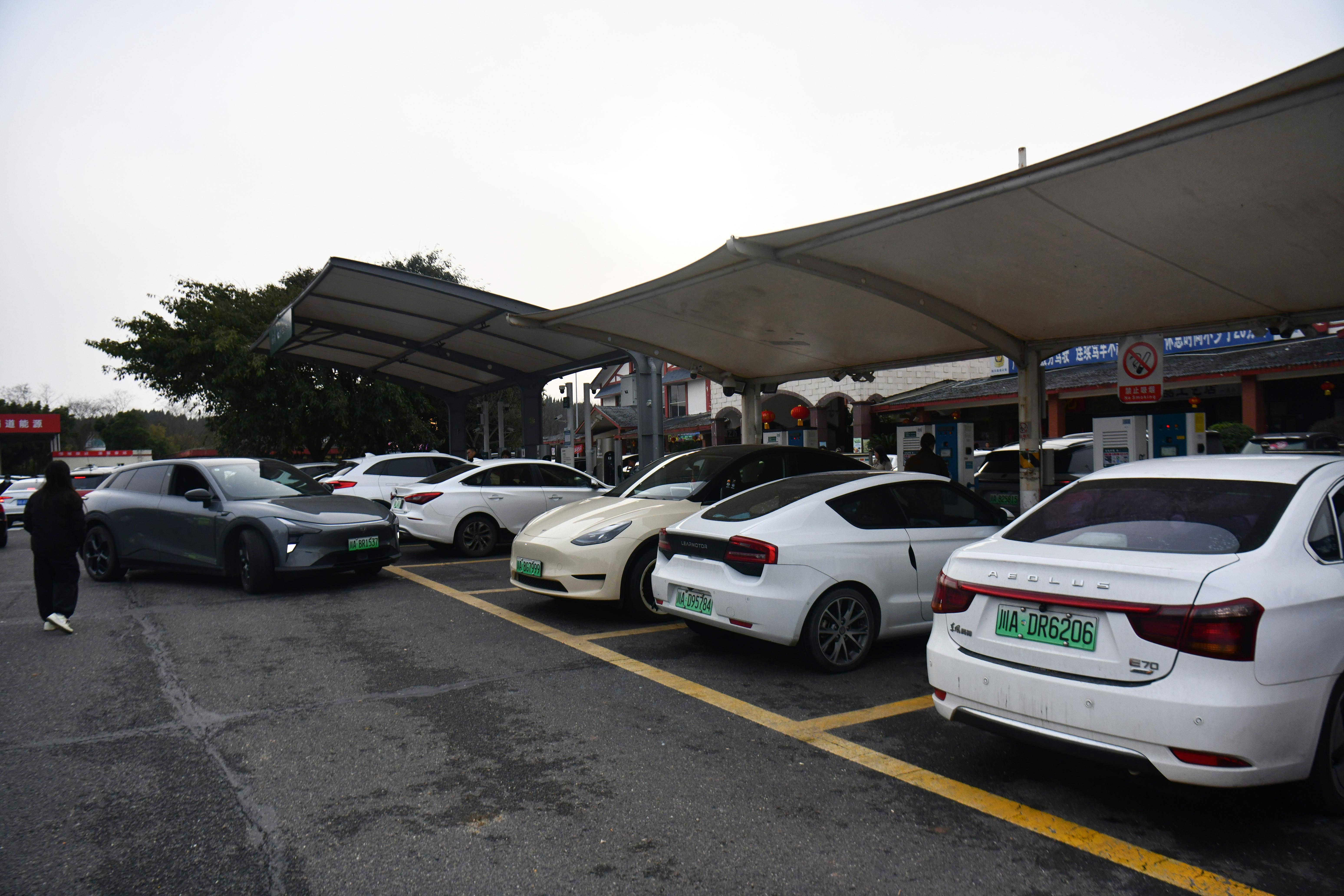 今年的春运路上,充电保障到底做得怎么样?在京沪高速高邮服务区,记者看到新能源充电区域标识清晰、划分规整。这里已经完成了充电设施扩容,在原有40台直流充电桩、64把枪的基础上,新增26台直流充电桩、46把充电枪。目前,高邮服务区充电枪总量达110把,其中包括6把600千瓦大功率液冷超充枪,充电总功率提升至8960千瓦,整体充电能力提高近七成,将有效缓解春运期间充电排队问题。记者在现场看到,不少新能源车主正有序停车充电。
