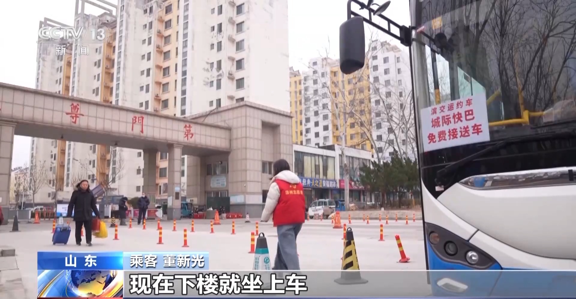 乘客 董新光:以前坐车还要转车,还要进站,行动不便,很不安全,现在下楼就坐上车,既安心又省事,非常好。