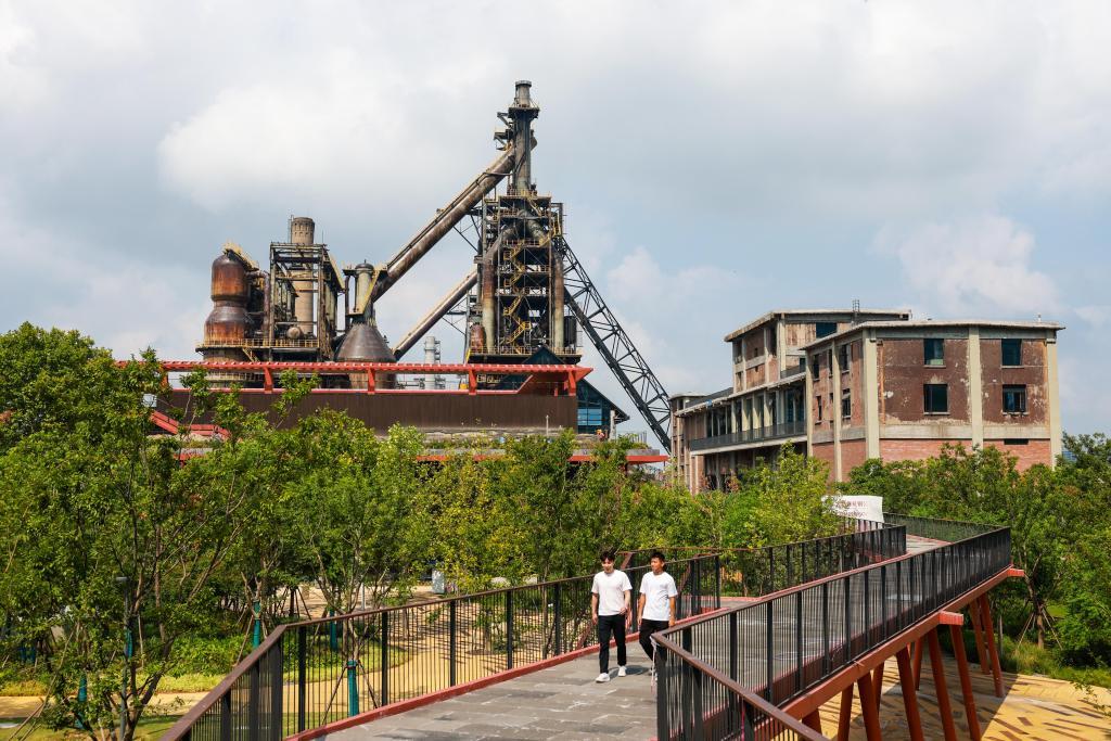 游客在大运河杭钢公园内参观游览。新华社记者 江汉 摄