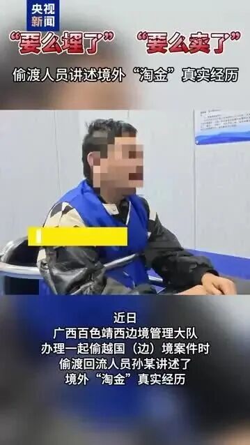据央视新闻,近日,广西百色靖西边境管理大队办理一起偷越国(边)境案件,偷渡回流人员孙某讲述了境外“淘金”经历。