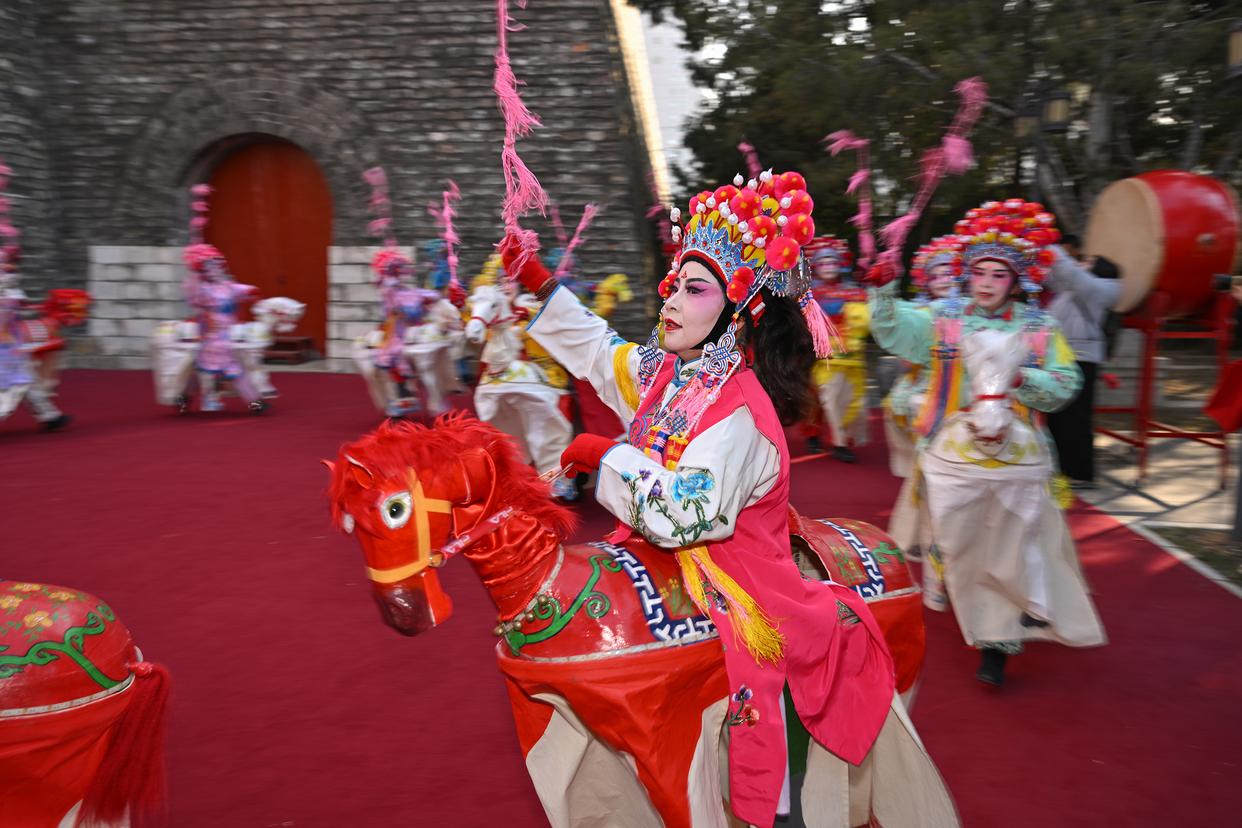 这是活动上的跑竹马表演(2月4日摄)。新华社记者 李鑫 摄