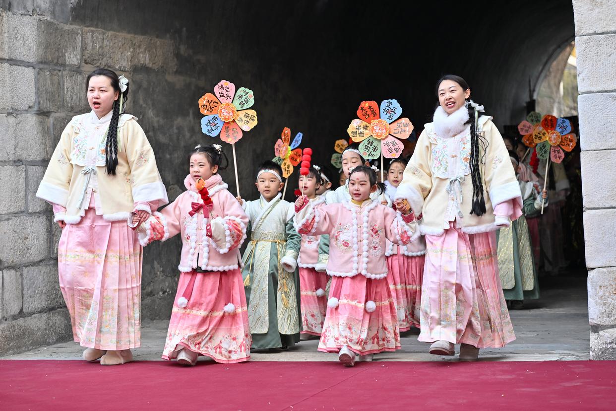 这是文化活动中的喊春仪式(2月4日摄)。新华社记者 李鑫 摄