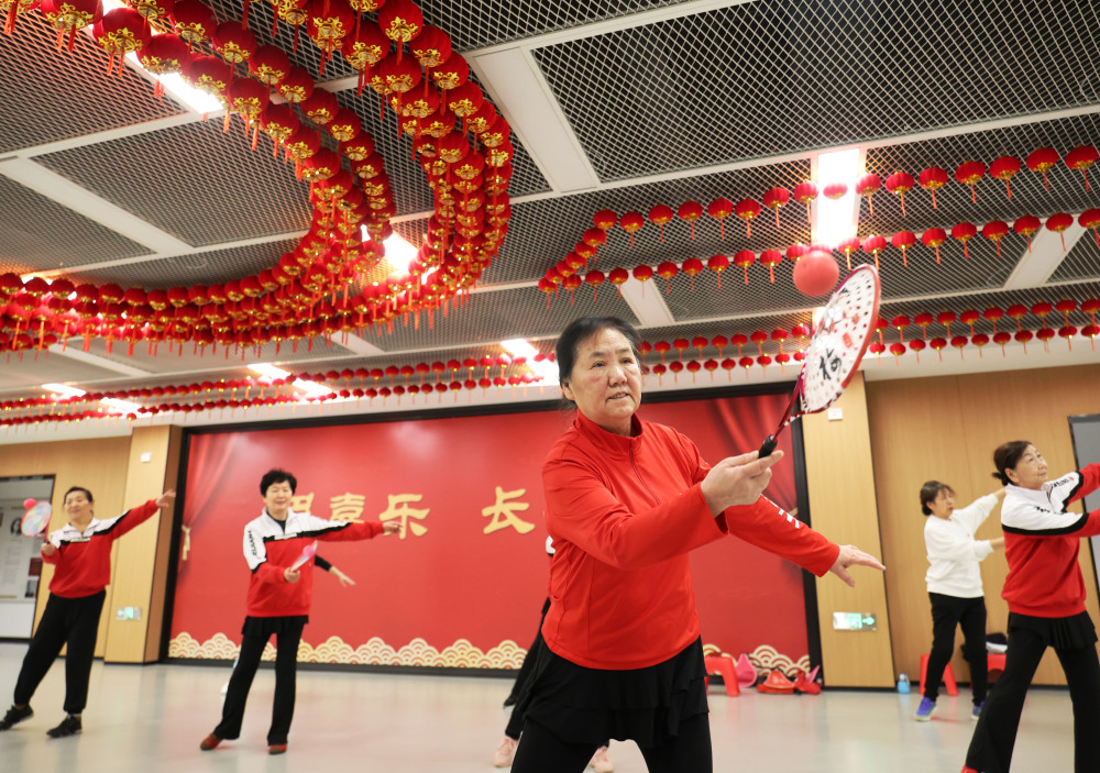长安社区居民在党群服务中心做操。新华社记者 李钢 摄