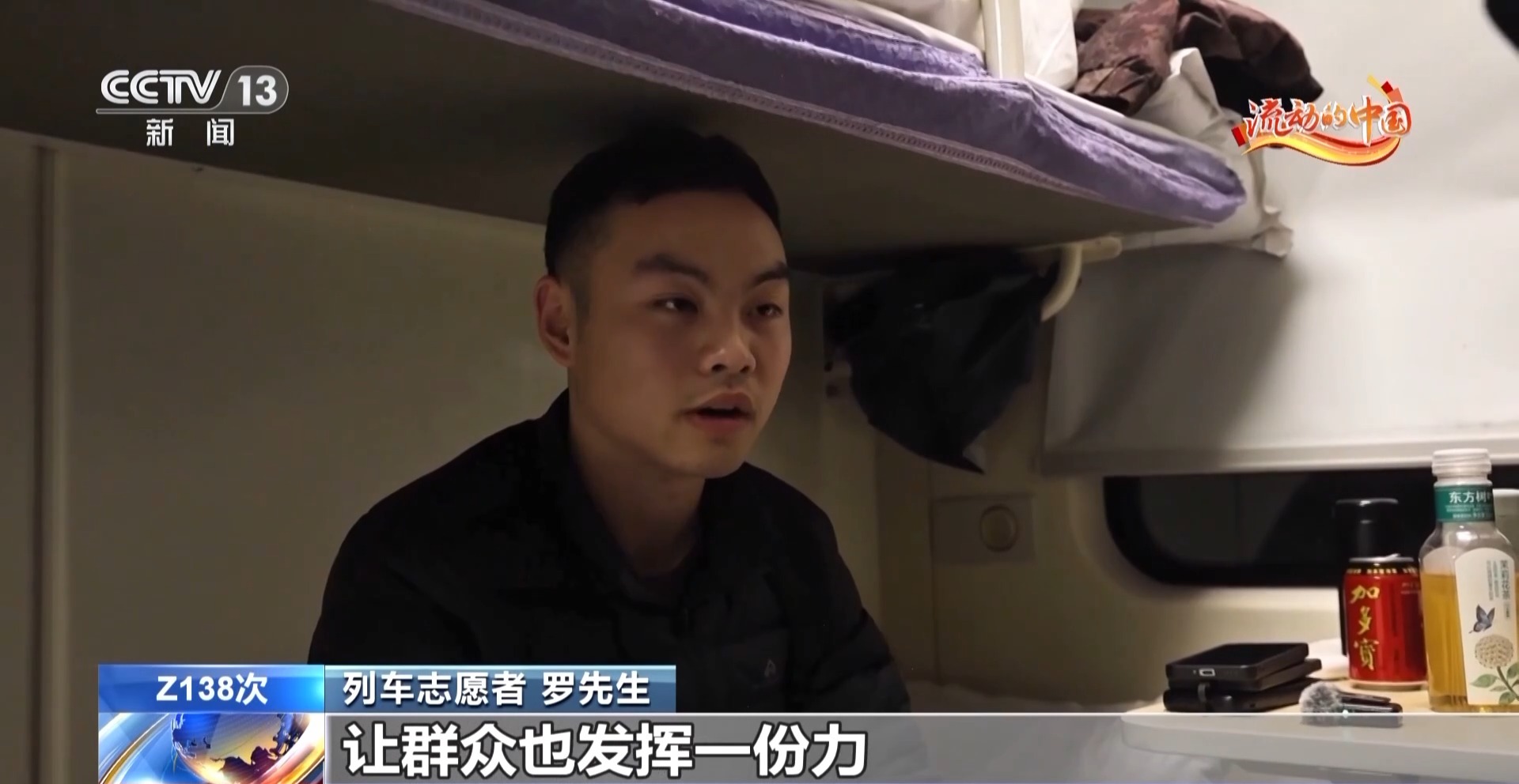 列车志愿者 罗先生:列车上人的工作人员是有限的,集合群众的力量,让群众也发挥一份力,有什么特殊情况都可以及时地汇报、解决,这样对大家都有好处。