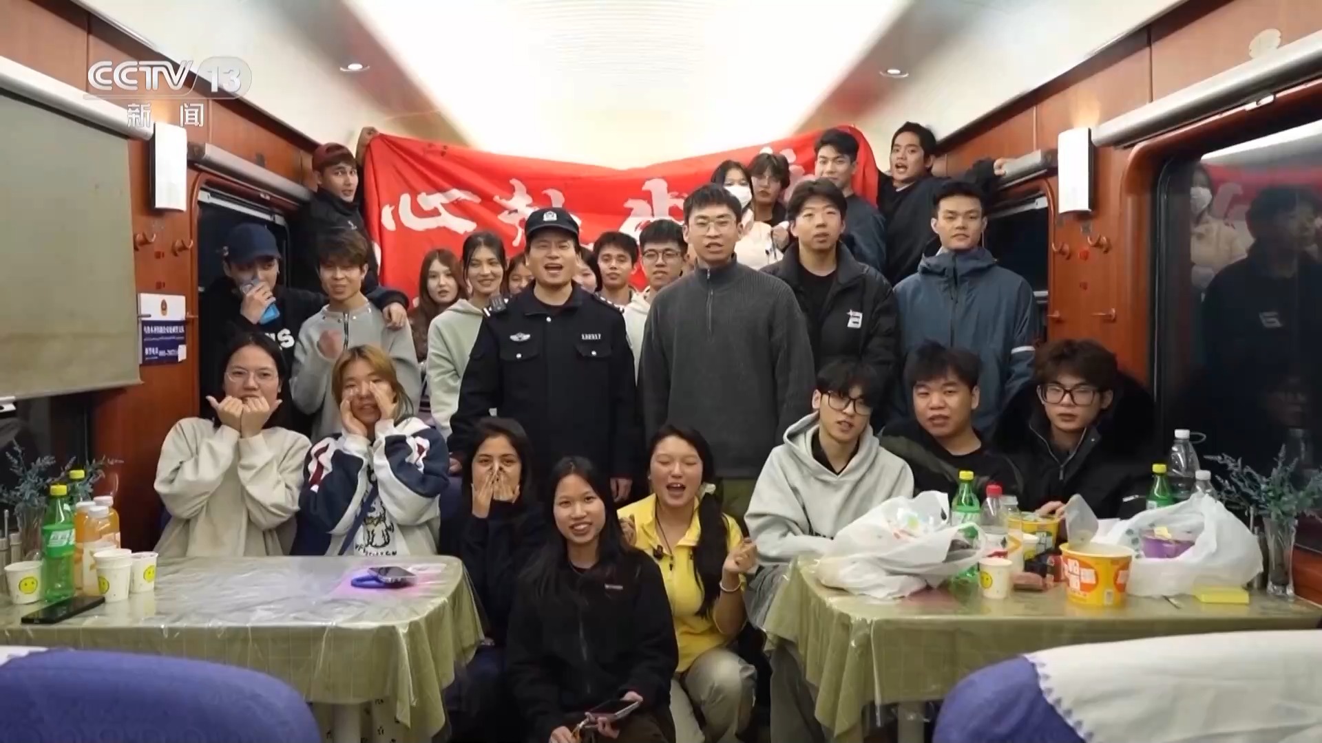 忙碌了全程,为了感谢志愿者,乘警在列车快到站的最后一个晚上,邀请志愿者们在餐车开了个小型联欢会,歌声、笑声中,车窗外的风景渐暖,故乡渐近。49个小时的旅程,18名平安志愿者和3名乘警,默默守护着全列旅客平安归家。在这列“开往春天的列车”上,平安,从来不是一个人的事,而是一群人的心愿与行动。