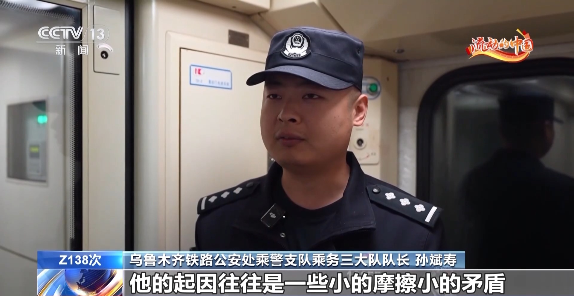 乌鲁木齐铁路公安处乘警支队乘务三大队队长 孙斌寿:有些矛盾在萌芽的时候大家第一时间跟你说,人刚开始拌嘴,第一时间介入让列车员过去,然后我们再过去,把矛盾化解掉,避免矛盾再升级。