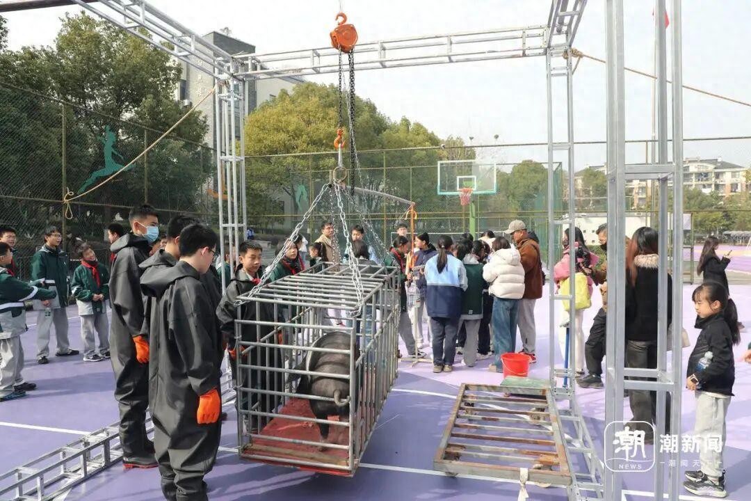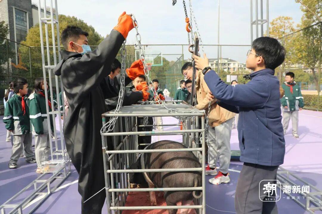 现场不少七年级同学是首次参与称猪挑战。“原来物理公式可以这么有趣!真正用在生活中,知识一下子就活起来了。” 这次称猪,用上了杠杆平衡、滑轮、平衡力等知识。