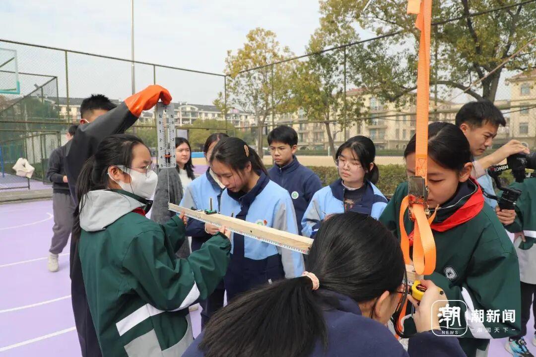 在指导老师金磊、顾枭杰的带领下,“称重小队”的同学们分工协作,迅速组装好自制的杠杆称重装置。