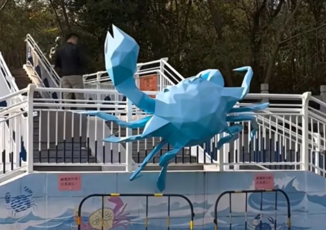 在厦门同安西柯街道丙洲西路的国祺中学人行天桥上,一座趴在护栏上的螃蟹雕塑近日成了周边居民的“心病”。有市民反映,螃蟹雕塑的蟹脚尖锐、设置高度较低,正对人行道,存在安全隐患。一名市民因撞上雕塑导致额头出血。
