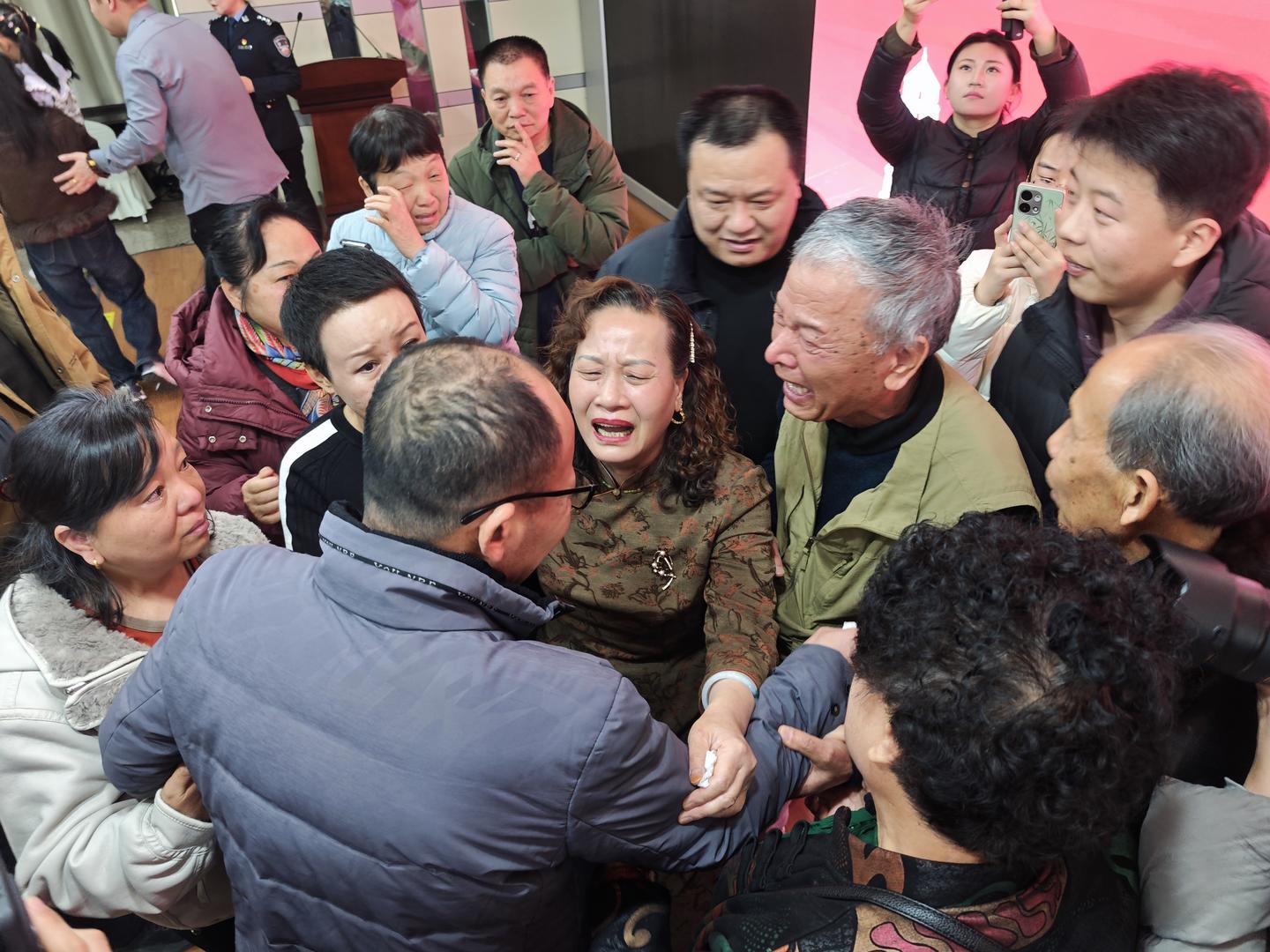 ▲徐照瑞、于秀珍夫妇和儿子徐超团圆,泪流满面