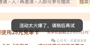 有用户反馈,出现服务器卡顿问题。部分用户分享的页面显示,“活动太火爆,请稍后再试”。