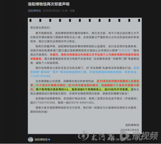 2月6日,洛阳博物馆通过官微郑重声明: