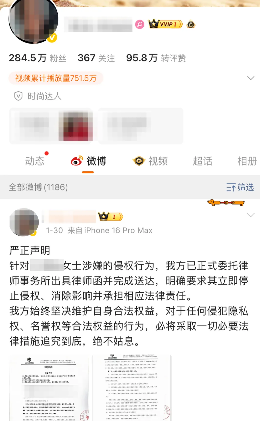 ▲陈女士个人微博