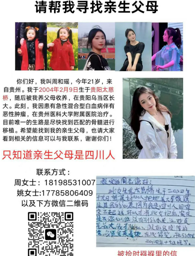 此前,另一位四川男士联系了周和瑶的养母姚女士,自称可能是其生父,据姚女士讲述,这名男士来自四川,曾在上海工作,其间与一位贵州女孩相恋,不久后女孩便怀有身孕。在女方怀孕五六个月时,提出要独自返回贵州生育,此后二人便失去了所有联系。