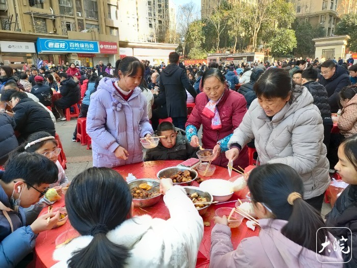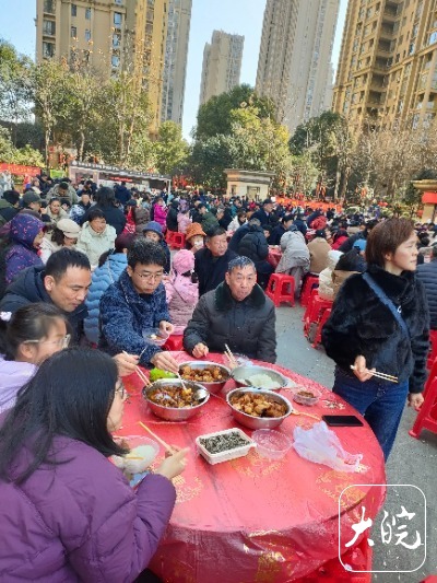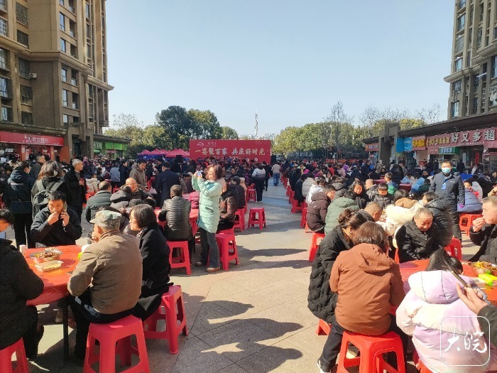 大皖新闻讯 为迎接春节到来,提升邻里情谊,合肥笔架山街道太阳海岸花园小区于2月8日在小区西广场举办百家宴活动,邀请千名业主欢聚一堂,共庆新春。中午11点,大皖新闻记者来到活动现场,发现现场张灯结彩热闹非凡,欢声笑语不断,美好的新春图景展现在眼前。