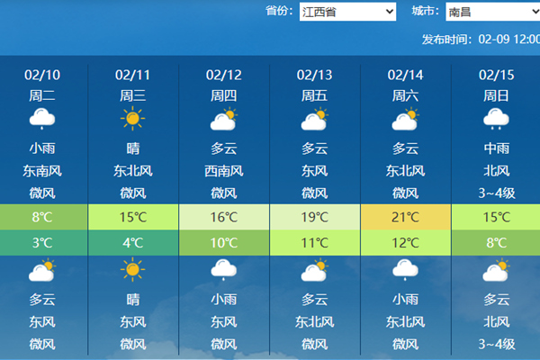 明后两天南昌气温回升,回暖前后冷暖反差大。(来源:中央气象台)