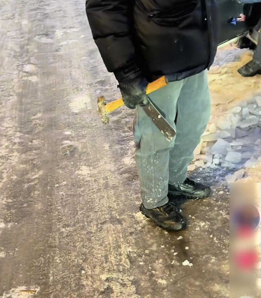 有人带着菜刀锤子来除冰