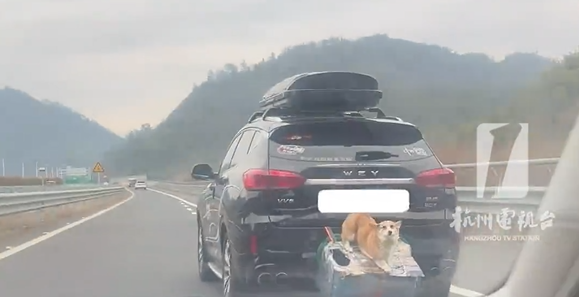 杭州公安交管高速一大队通过公共视频发现,柯基爬出狗笼后跳至路面,而司机察觉后直接将车停在硬路肩,未设置警示标志便匆忙下车寻犬。