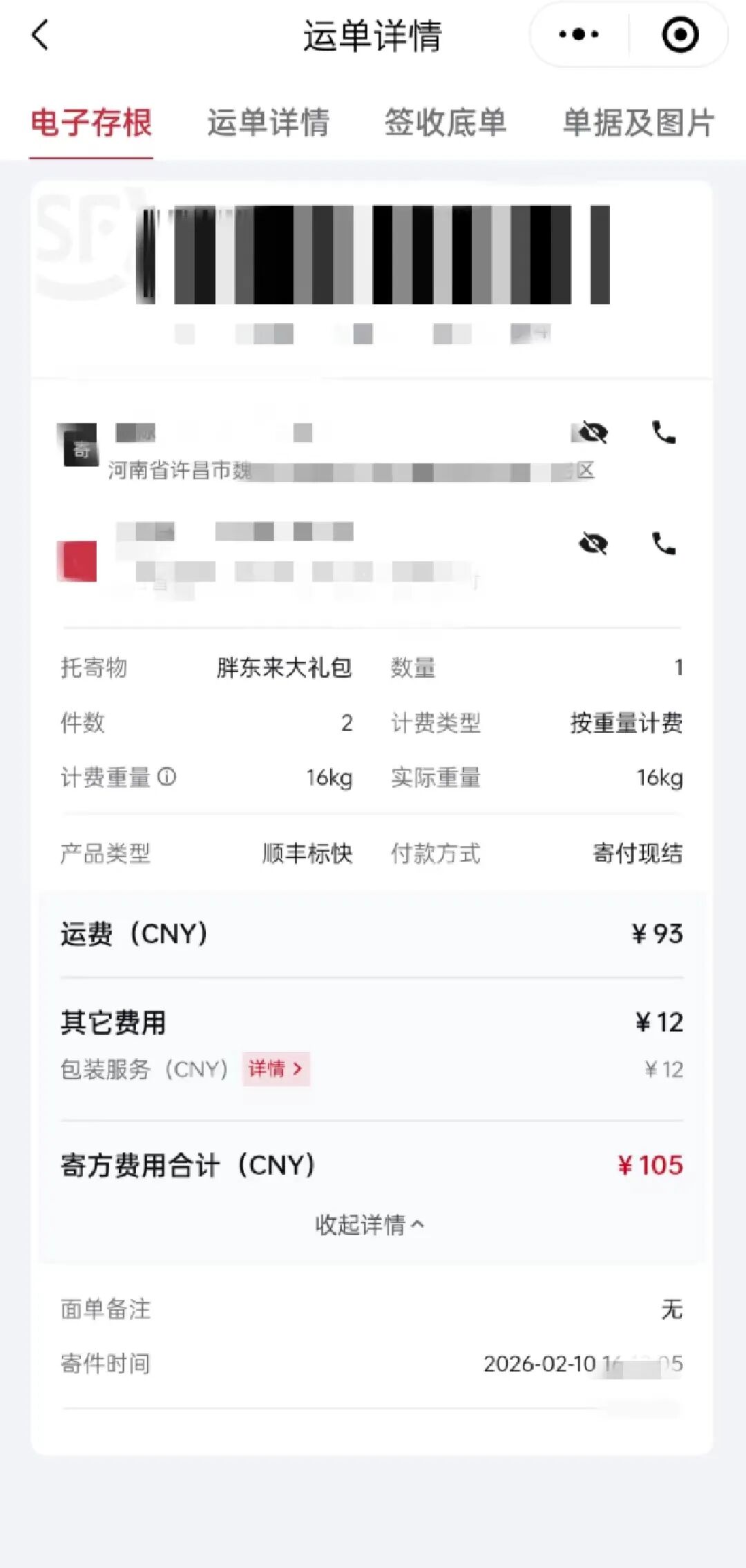 发帖者赵先生来自山西晋城,他告诉大河报《看见》记者,前几天接到胖东来工作人员打来电话,说过年了要寄一点小礼物,他原本以为是对联之类的文创小礼品,没想到寄过来两大箱一共16kg的大礼包,价值七八百元,仅快递费就超过了100元。