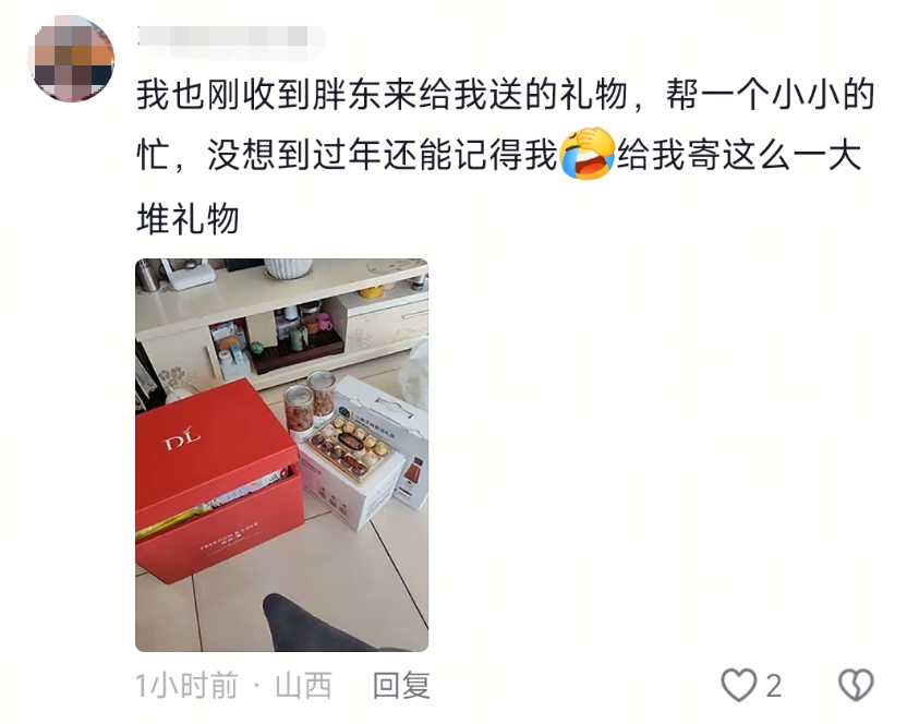 总有人会惦记着你!2月11日,有网友发帖称,帮了一个小小的忙,没想到胖东来给他寄来满满两大箱年终福利。