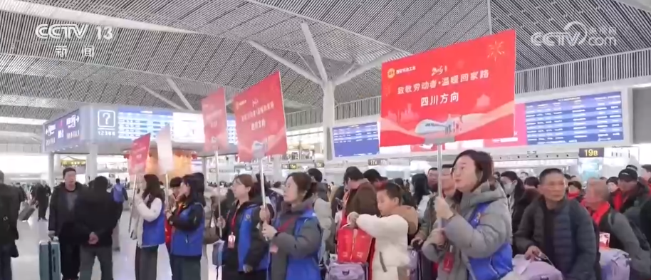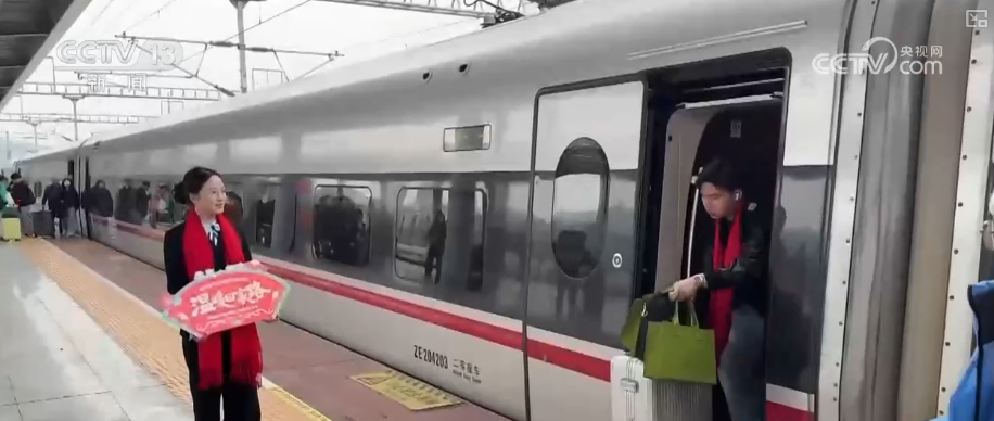 在湖南多地,春运正迎来节前返乡高峰。湖南娄底南站不仅为返乡务工人员开设了首趟务工高铁专列车厢,还给乘客们发福字、准备了家乡的味道。