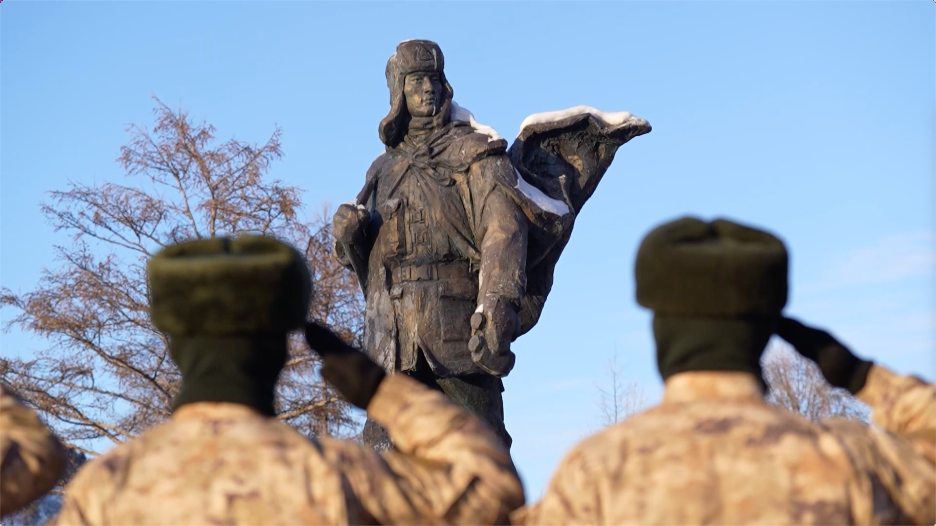 战士们在雕塑前