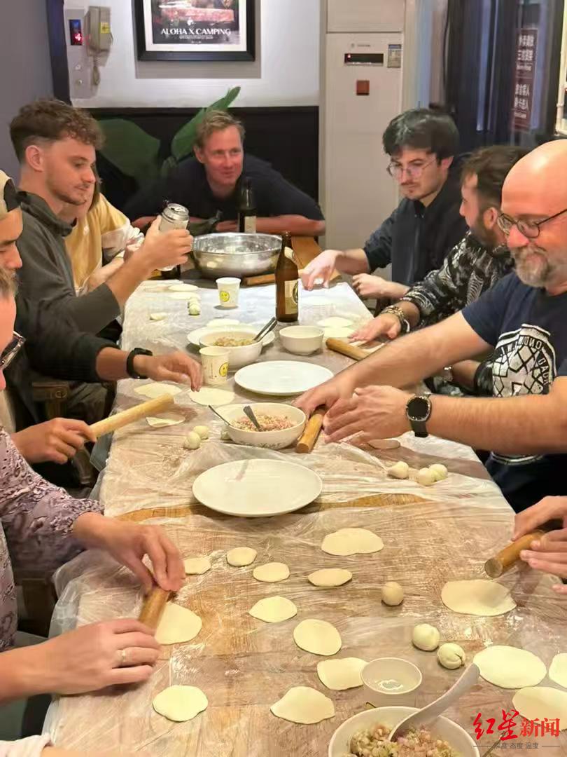 揉面、擀皮、填馅……在紧邻成都春熙路的一家酒店内,来自全世界的旅客聚在一起包饺子,这样的热闹场景每个月都要上演四五回。
