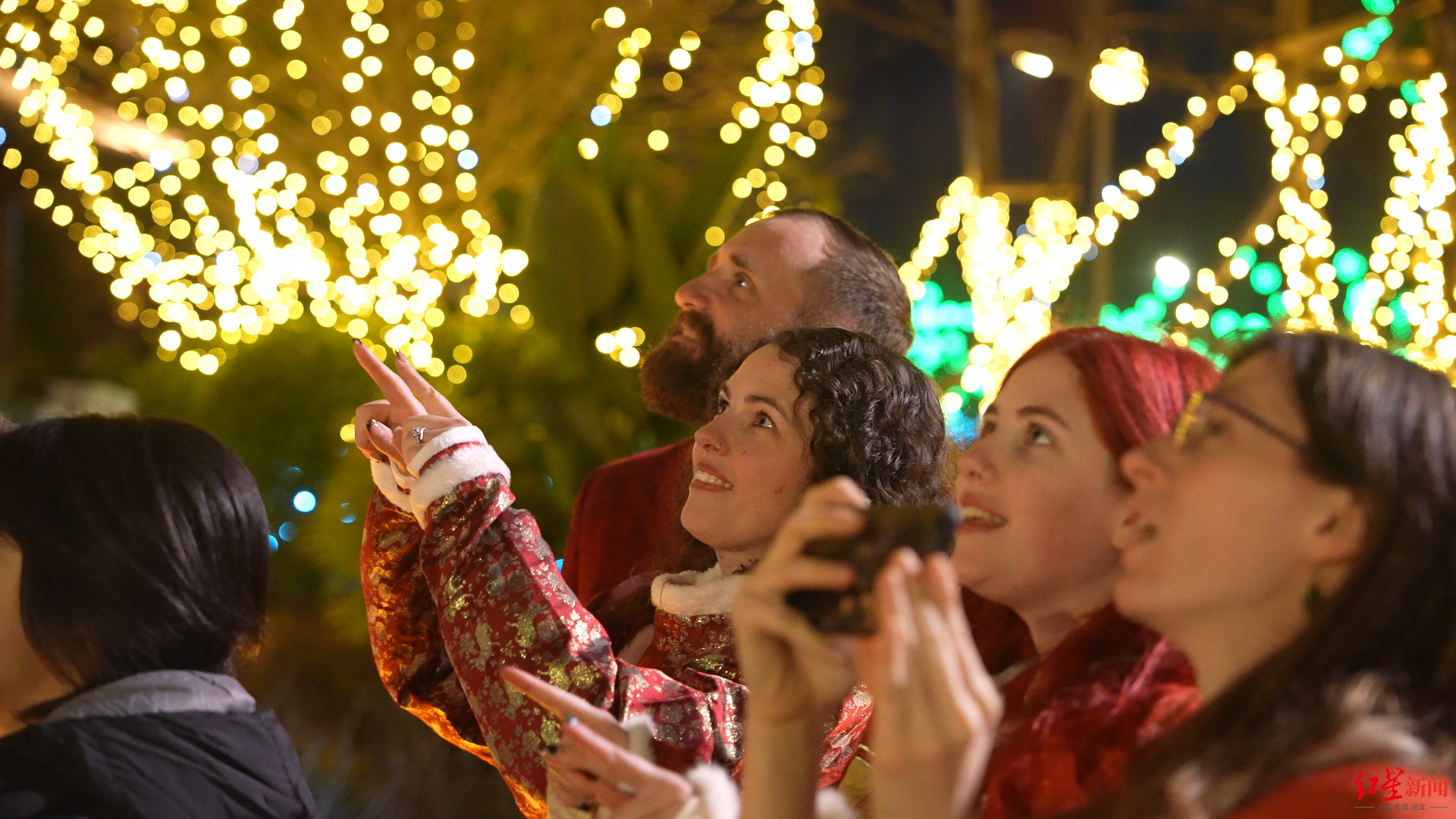 最近数据显示,春节假期使用非中国护照预订国内航班的数量同比增长近三成,成都排进全国热门入境游目的地Top5。来成都、留在成都过年的外国旅客越来越多,他们有的走出室外,聚一起看灯会,感受烟火气;有的计划留在室内,和女友一起看春晚,度过时光。