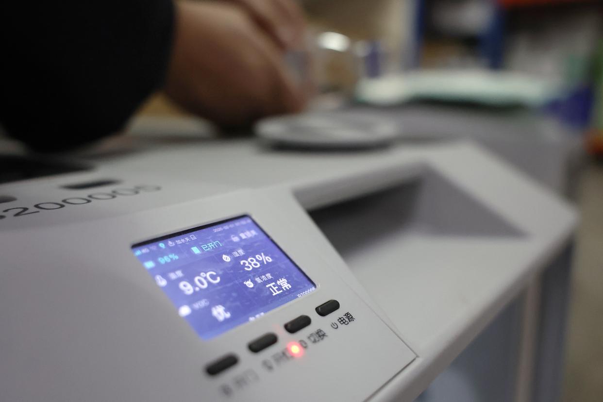 箱体液晶屏上,温度、湿度、氧气浓度等数据清晰可见