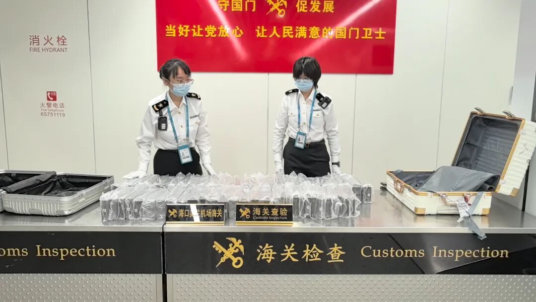 近日,海口海关所属海口美兰机场海关旅检现场在监管进境客运航班时,发现1名旅客托运行李先期机检图像存在异常,该名旅客选择“绿色通道”进境,未向海关进行任何申报。现场关员经开箱检查,在该名旅客携带的行李箱中查获大量香烟,共计58条。