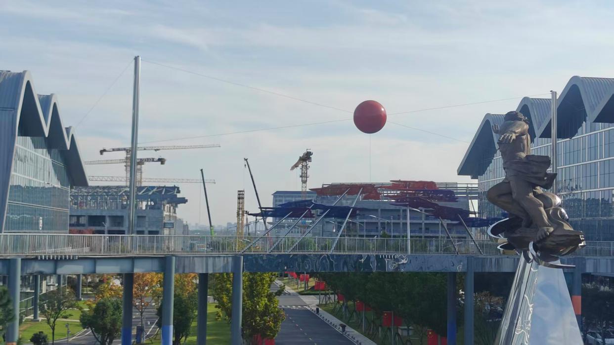 2025年11月3日拍摄的“夸父”园区的夸父雕像。新华社记者 陈诺 摄
