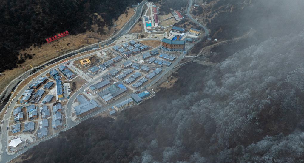 这是2月5日拍摄的云雾中的玉麦乡全景(无人机照片)。新华社记者丁增尼达摄