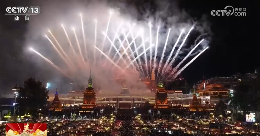 除夕夜,云南西双版纳告庄西双景星光夜市迎来马年新春烟花盛宴。璀璨烟火在星光夜市上空次第绽放,与澜沧江粼粼波光、夜市万盏灯火交相辉映,也勾勒出傣乡最动人的新春夜景。